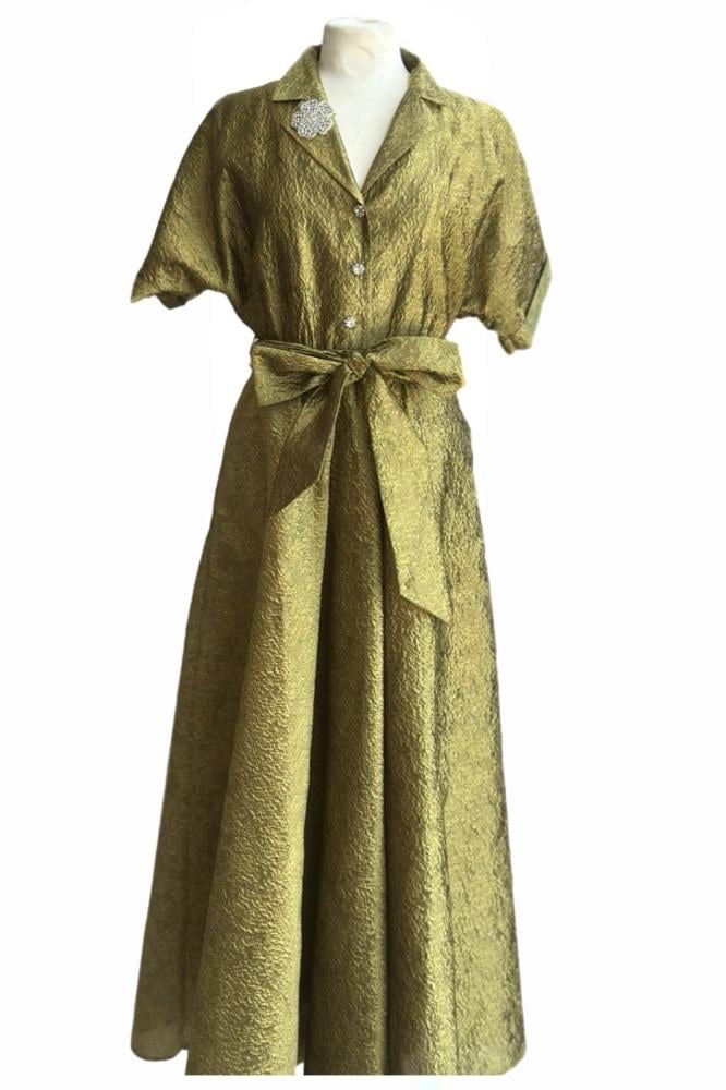 فستان بتصميم أنيق وعصري، يجمع بين الأنوثة والراحة. لونه وردي فاتح ناعم يضفي لمسة من الرقة والجمال. يتميز بياقة قميص وأكمام قصيرة، مما يجعله مناسباً لمختلف المناسبات. يوجد حزام من نفس القماش يحدد الخصر، ويبرز جمال القوام. التنورة واسعة قليلاً، مما يمنح الفستان حركة وانسيابية. الفستان مصنوع من قماش تفته جاكار فاخر، يتميز بملمسه الناعم وتأثيره اللامع الخفيف. يحتوي الفستان على جيوب جانبية مخفية، تضيف لمسة عملية وأنيقة. مثالي للمناسبات الخاصة والسهرات، مثل حفلات العشاء، أو المناسبات الرسمية، أو حتى كفستان استقبال بسيط. يمكن تنسيقه مع إكسسوارات فضية أو ذهبية ناعمة، وحذاء بكعب عالٍ لإطلالة متكاملة. اللون الوردي الفاتح يمنح الفستان طابعاً أكثر نعومة ورومانسية، ويجعله خياراً مثالياً لمن يفضلون الألوان الهادئة والرقيقة.