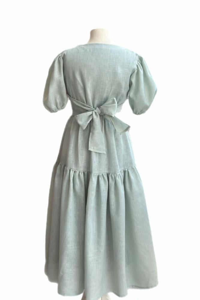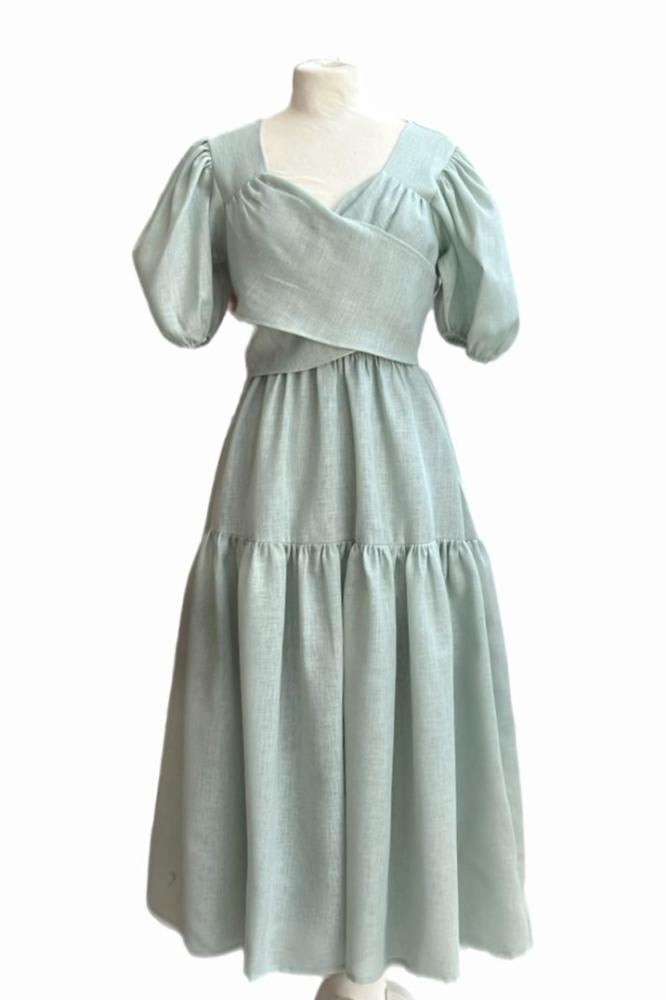 هذا الفستان مصنوع من قماش اللينن الهندي الفاخر المعروف بخفته وملمسه الطبيعي المريح، بلون هادئ يمنح إطلالة راقية وناعمة. يتميز بتصميم عصري يجمع بين الأناقة والبساطة، حيث يأتي بقصة صدر متقاطعة أنثوية، وأكمام منفوشة تضيف لمسة رومانسية، مع خصر محدد وتنورة واسعة بطيات ناعمة تمنح حرية في الحركة وأناقة انسيابية.