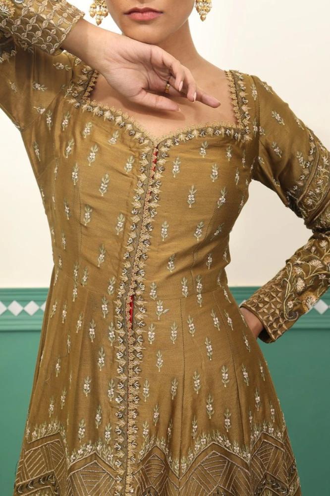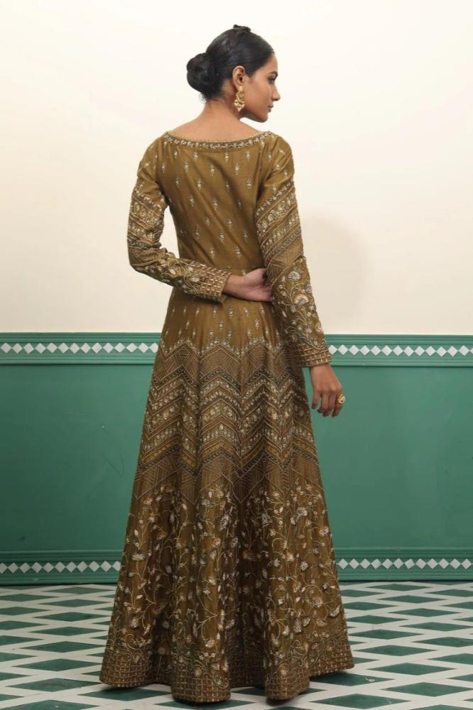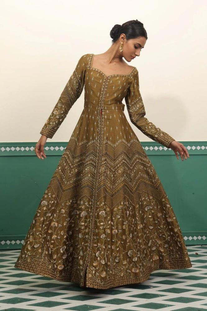 فستان هندي اخضر زيتوني